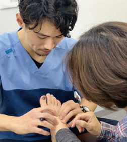 協会にて3,000体以上の足裏の圧力測定を行い分析した結果、身体に不調の認められる方の足裏には特徴的なパターンがあり、理想的な足の方には不調がなく、姿勢も整っており、運動パフォーマンスが高い事がわかりました。そこで、足の形状を理想的な形に戻す施術と、下肢の筋力を強化するメニューを実施することで、症状が改善するというデータが多く認められました。この一連の改善の流れを、カリキュラムに落としたものがフットチューニングです。多くのフットチューニングトレーナーを育成し、トレーナー皆様の指導現場に役立てて頂きたいと存じます。